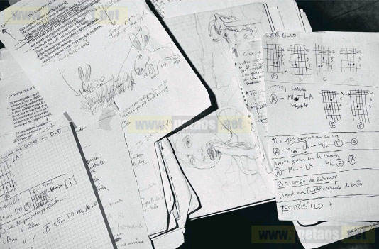 Durante el paseo, se detiene una decena de veces para hacerse fotos con los transeúntes. Va desgranando su método para escribir canciones. No hay regla fila. En su casa tiene un pequeño estudio de grabación. Dice que sabe lo justo de tecnología para poder abrir una pista y grabarse. Lanza un ritmo. Añade guitarras. Un teclado. Y coloca encima una melodía de voz. «Un vikingo», lo llama. Porque la canta en un inglés falso. Pone un ejemplo: «Uen shei van doma ni criyar», canta en la calle. «Que no significa nada. Y luego toca hacer el crucigrama, ir rellenando sílabas». A menudo, sus letras parecen frases sueltas. «Son flases», dice. «Yo vivo. Y mientras, voy apuntando cosas, reflexiones, pequeñas tontonas. Voy al cine, por ejemplo, con mis palomitas, y flipo, me impacta, y salgo y digo ‘taxi!’, y me vengo corriendo a casa y me sale la canción entera. Entro en un bucle raro. Es una necesidad. Hablar con el mundo y vomitar mis pedradas». Una de estas pedradas son los indios de Norteamérica. Es capaz de hablar de ellos durante casi quince minutos sin tornar aire. «Hay algo en su búsqueda sencilla», dice en un momento dado, «de un mundo más natural y salvaje, mis duro en el sentido físico, pero emocionalmente más pleno. Y con una información limitada, de 40 kilómetros a la redonda. Lo otro. Son rumores, acontecimientos que llegan cuando ya han pasado. Otra de las cosas que me atruena es la cantidad de información a la que me veo sometido. Por voluntad propia. Soy el primero que abro un diario, Quiero ver las noticias, sus mentiras, dónde hay un atisbo de verdad, quiero juzgar a mi manera el mundo… Pero la información es brutal. Estás enterándote de cosas que suceden en Alaska. Turquía. Albacete. Es i n abarcable. Y mi cerebro de pequeña hormiga, acaba estallando. Entonces me refugio en mi guitarra, mis canciones, mis cuadros. ¡Por favor, dejadme tranquilo! Y tengo que participaren esta cacofonía intergaláctica a mi manera, con cuatro acordes. Yo también os daré el cañazo a vosotros, cabrones! me queréis hundir!». Comienza a reírse de forma nerviosa. «pa la ¡al Ay, señor». Sea como sea, sus pedradas, por lo general, enganchan con el público. Manolo García ha vendido algo más de cinco millones de discos, repartidos más o menos al SO% entre su carrera como solista y las tres formaciones anteriores. Ha tocado cerca de 1.600 conciertos desde los setenta. Su mayor éxito, con diferencia, es la canción Pájaros de barro, contenida en su primer disco en solitario (Arena en los bolsillos. 1998). Podría haberse retirado después de publicarla. Lo que ocurrió con aquel tema «es un milagro», dice. En ella habla de mapas, del tiempo que se escapa. ‘De mi condición de nómada», resume. Sus temas recurrentes. García lleva siempre a la espalda una mochila de montañero que le confiere cierto aire vagabundo. Nos muestra el contenido; una linterna, pilas, unas gafas de sol y una gorra para camuflarse, un par de libros siempre dos «por si llega el fin del mundo», un lápiz, una goma de borrar, y también una goma elástica como las que anudan los practicantes alrededor del brazo. Se explica: es para el tirachinas. La acaba de comprar en la farmacia. La anterior se le ha secado. Suele usar el artefacto cuando visita el pueblo. Una cuerda extendida y 10platos de café colgados con pinzas. Su padre rompía 10 de 10. ÉI no es tan preciso. Pero necesita este tipo de refugios para sobrevivir. «La patria es la infancia», es una de sus frases. La patria. Solo volverá a hablar de ella durante el almuerzo en un restaurante de menú adosado al Centro Moral y Cultural del Poblenou, en cuyo teatro dio el primer concierto de su vida cantando con un coro (se desmayó en la actuación). Irá entrando en materia política, primero hablando en general, más adelante de Cataluña. Se muestra furioso. Menciona la prepotencia y la chulería, incluso la megalomanía de muchos representantes publicas acomodados en su «poltrona». Y hasta tal punto se indigna y lanza improperios, que unos días después quiso matizar sus palabras a través de un correo electrónico, también reivindicativo, pero mucho más suave y formal: «Se les llena la boca con la palabra democracia, pero una vez conseguido el poder no hay responsabilidad hacia lo prometido. En sus respuestas se ve que nos tratan como chusma. (…) No se les puede dejar solos: hay que leerles la cartilla constantemente. Cómo no va a haber indignación. Lo que es un milagro es que la gente no haya salido en masa a la calle». Y sobre Cataluña, cuestión en cuyo fango se mete de lleno en el almuerzo, hablando en primera persona como charnego, también quiso atenuar días después: «Cuando oigo a Aznar asegurando que habla catalán en la intimidad o a Jordi Pujol, delante de 40.000 personas en Santa Colonia, diciendo: ‘A mí también me gustan los Chunguitos, los oigo en mi casa’, siento vergüenza ajena. Me asombra el cinismo que puede tener un político con tal de aferrarse al poder. (…) La gente tiene derecho a opinar. En Suiza no se mueve una piedra sin que el pueblo opine y nadie se rasga las vestiduras. (…) Entiendo que el Gobierno se horrorice ante la idea de perder una de las vacas que dan más leche. A la vez, respeto que una cantidad importante de personas sueñen con un Estado independiente. (…) He nacido en Cataluña y me siento catalán. Pero también me siento de Albacete».