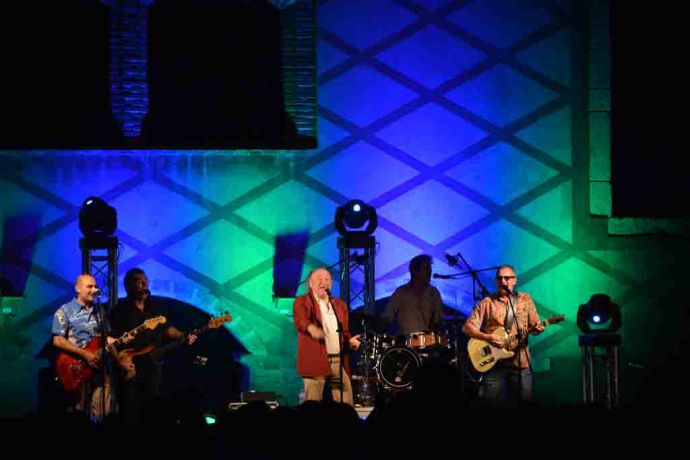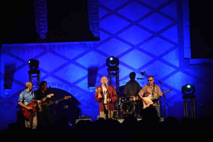 El público, que despidió Halldor Mar entre aplausos y se quedó con las ganas de algún bis, volvió de nuevo al escenario del patio para ver uno de los platos fuertes de la noche, el trío formado por Jaume Sisa, Quimi Portet y Joan Miquel Oliver, que anunciaron «con pena» que hacían al Interludio el penúltimo concierto de la gira que han ofrecido plegado bajo el nombre de Col • lectivo Eternity. Entre bromas, los tres músicos que, en este proyecto, interpretan los repertorios unos de otros, interpretaron temas como «Sunny Day», «Hombres y mujeres del derecho», «Payaso», «Hansel y Gretel» o «El hijo del maestro «. Se despidieron del público de Calonge, que no dejó de aplaudirles y riure’ls las ocurrencias, con «La Rambla» de Quimi Portet.