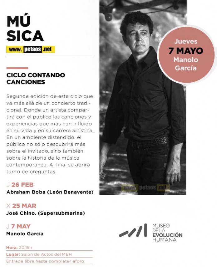 El próximo jueves 7/5/15 Manolo García estará en una CONFERENCIA, a las 20:15, en el Museo de la Evolución Humana de Burgos.