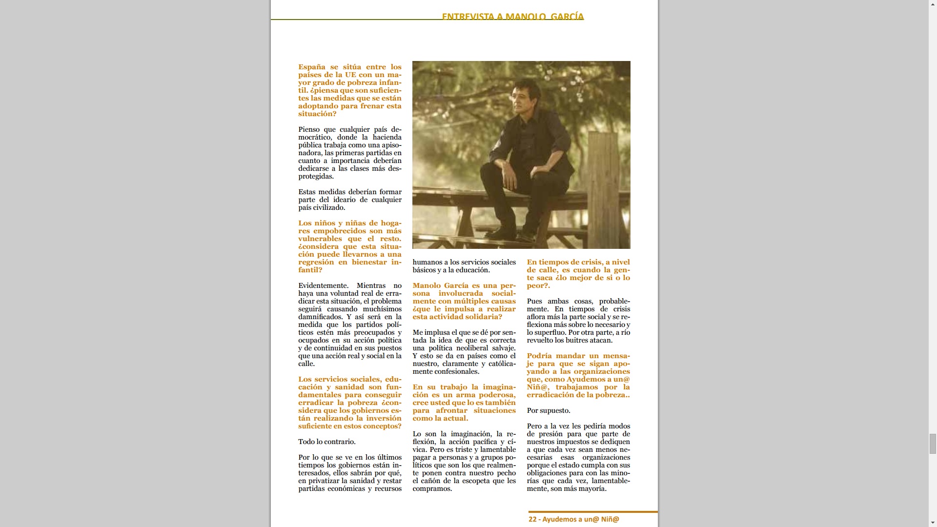 Entrevista a Manolo García en la revista ONG AYUDEMOS A UN@ NIÑ@ Aaun+ 2015: