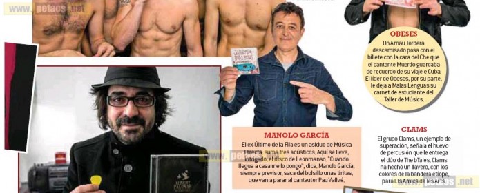 Manolo García: El ex-Ultimo de la Fila es un asiduo a Música Directa: suma tres acústicos. Aquí se lleva, intrigado, el disco de Leonmanso. «Cuando llegue a casa me lo pongo», dice. Manolo García, siempre previsor, saca del bolso unas tiritas, que van para el cantaautor Pau Vallvé.