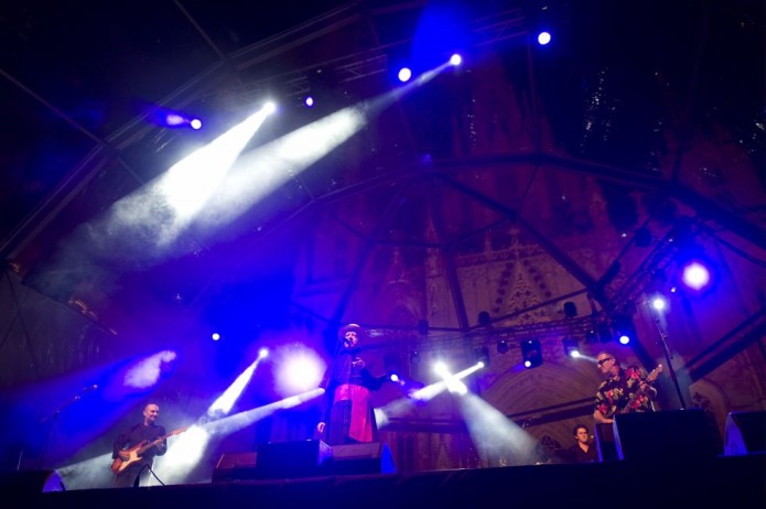 Prácticamente cuando Marinah y Chicuelo acababan su actuación comenzaban los fastos en la plaza de la Catedral, esta conservando la atractiva estructura del pasado año con un escenario transparente en la escalinata ante la fachada catedralicia. A esa hora El Petit de Cal Eril y Free Spirits cocinaban una propuesta caótica y, por momentos, molesta. Todo lo contrario a lo que sucedía en la plaza de Sant Jaume donde la banda barcelonesa Moussakis, liderada por el violinista Branislav Grbic, ofrecía un agradable paseo por diferentes sonoridades balcánicas. Con una primera línea de violón, clarinete y acordeón, el grupo contagió ganas de bailar a una muchedumbre que casi llenaba la plaza inundándola todo de un buen rollo idóneo para una fiesta mayor.