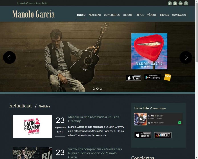 Nueva imagen de la web oficial (Sony) de Manolo García 1 octubre, 2015Manolo GarcíaLa web oficial de Sony de Manolo García ha cambiado de imagen: http://www.manolo-garcia.com Tweet