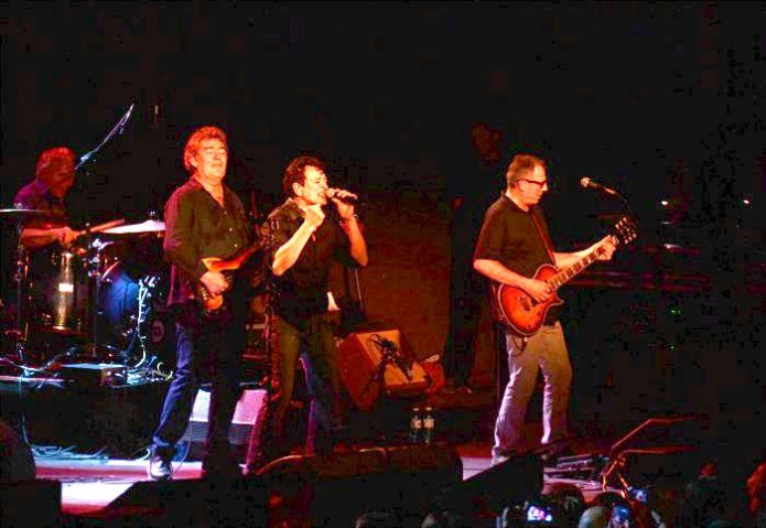 Como una gran banda de rock and roll en plena década de los ochenta: así saltó al escenario de La Riviera el grupo encargado de realizar la hazaña, un cruce de músicos de varias etapas. Además de dos coristas, acompañando a Manolo y Quimi estuvieron Josep Lluís Pérez (guitarra), Esteban Hirschfeld (teclados), Lluís Visiers (batería), Ángel Celada (batería) y Antonio Fidel (bajo). Este último no dejó de sonreír en todo el concierto, partícipe de una felicidad que se respiró arriba, en los rostros de los músicos, y abajo, en el de los asistentes, con muchas ganas de hacerse fotos, cantar a pleno pulmón y descorchar recuerdos.
