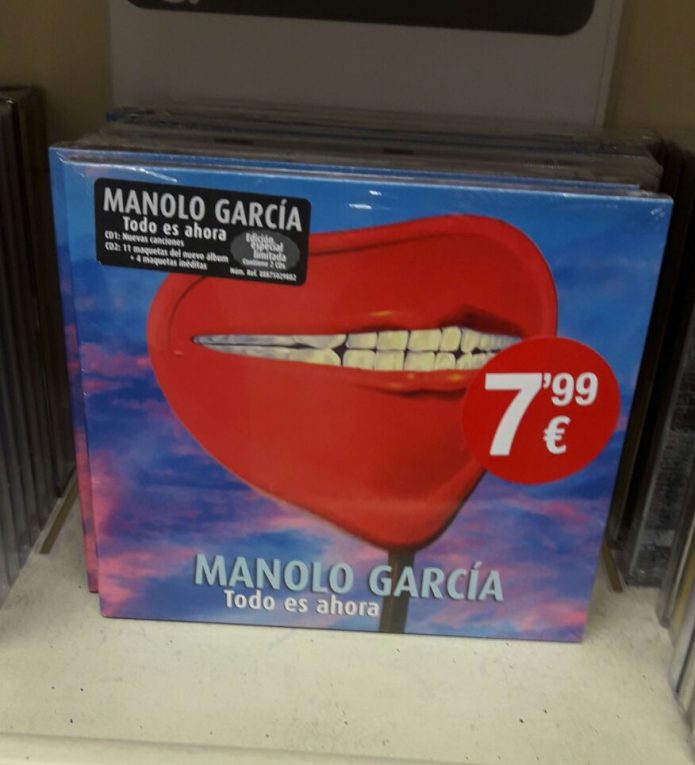 Por si algún rezagado todavía no lo tiene, y no se sabe las letras para el concierto de Manolo García el sábado en el Forum de Barcelona… en algunos El Corte Inglés está Todo es Ahora a 7’99€!#ManoloGarcía #TodoEsAhora #Gira2016 #Barcelona
