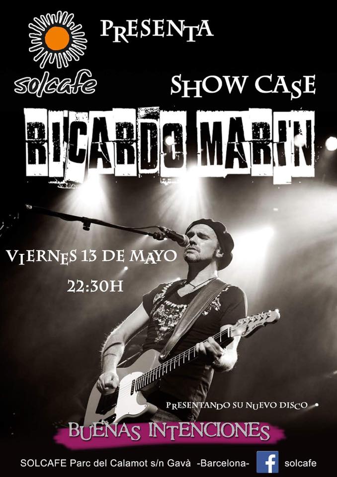 Esta noche Ricardo Marín en Sol Café, Gavà 13 mayo, 2016Manolo GarcíaEsta noche en Solcafe Gavà, RICARDO MARÍN en directo presentando Buenas Intenciones! NO OS LO PERDÁIS! Le acompañará parte de la banda que mañana tocará con Manolo García! #RicardoMarín #BuenasIntenciones #ManoloGarcía Tweet