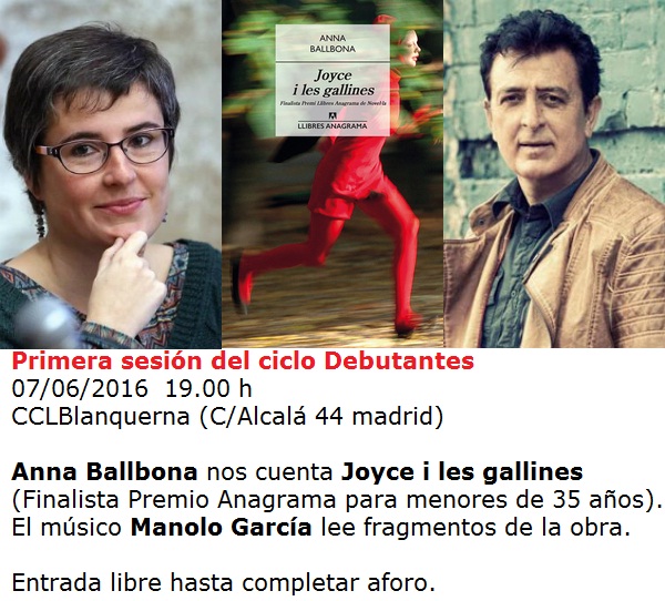 Primera sesión del Ciclo debutantes… Joyce i les gallines: Anna Ballbona nos cuenta Joyce i les gallines (Finalista Premio Anagrama para menores de 35 años).
