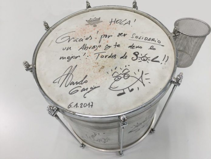 Y como cada año Manolo García ha participado donando esta vez un elemento de percusión firmado, que ha sido subastado por 400€ (David): http://cadenaser.com/emisora/2017/01/05/radio_barcelona/1483641768_754973.html