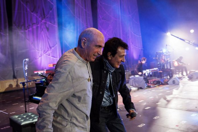 Un aperitiu agradable que va desembocar a l’hora anunciada en punt en una performance de la Fura dels Baus (amb tocs de Pink Floyd) evocant camps de refugiats, bombardejos indiscriminats sobre hospitals i migracions massives. El camí de la vetllada estava ja traçat però el públic encara es mostrava fred i distant. Va ser l’anunci de Manolo García amb Lluís Llach el que va despertar el personal del seu sopor. Amb l’ambient ja caldejat pels Pájaros de barro de Garcia, acompanyat amb palmes per tots els presents, va iniciar un ascens que ja no s’aturaria en tota la vetllada.