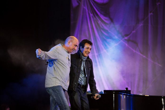 No era la primera vez que Manolo García cantaba en catalán ni tampoco la primera en que Lluís Llach abandonaba su voluntario retiro musical para subir a un escenario. Aparentemente no era nada excepcional pero verlos juntos cantar, precisamente, un tema como Venimos del norte venimos del sur , una canción que parecía especialmente escrita para la ocasión, se convirtió en el ejemplo idóneo de entrega total a una debido a que en ese momento no era sólo suya sino de todo un mundo mínimamente concienciado. Fue la primera vez de la noche, la primera gran ovación, la primera muestra de comunión entre público, escenario e ideas. La foto de dos mundos empujando hombro con hombro.