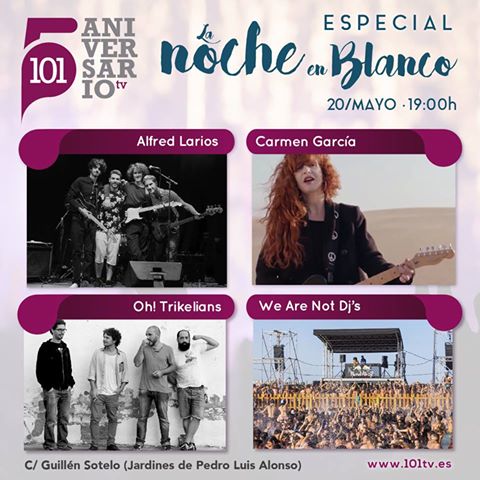 El próximo 20 de mayo tendremos retransmisión especial de La Noche en Blanco en Málaga para celebrar el 5º Aniversario de 101tv
