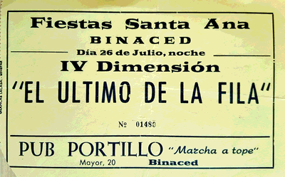 Entrada al concert de El Último de la Fila a Binaced (1986)