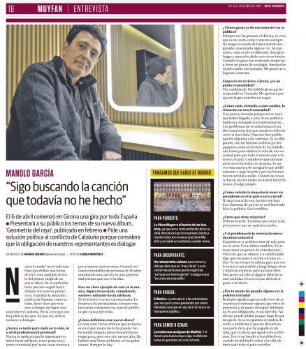 El 6 de Abril comenzó en Girona una gira por toda España. Presentará a su público los temas de su nuevo álbum, ‘Geometría del Rayo’, que publicó en Febrero. Pide una solución política al conflicto de Catalunya porque considera que la obligación de nuestros representantes es dialogar.