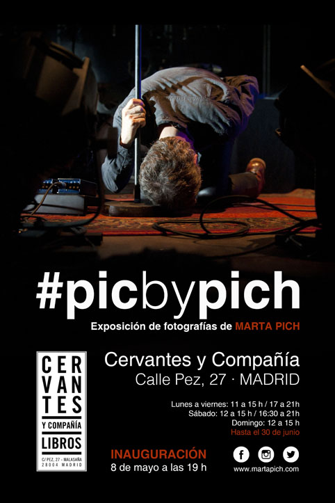 La fotógrafa Marta Pich presenta en la librería Cervantes y Compañía de Malasaña (Calle Pez, 27, Madrid) la exposición “#picbypich”, del 8 de mayo al 30 de junio. Pich recopila una selección de fotografías de conciertos y artes escénicas: Ara Malikian, Los Secretos, Manolo García, Mikel Erentxun o Fredi Leis, entre otros.