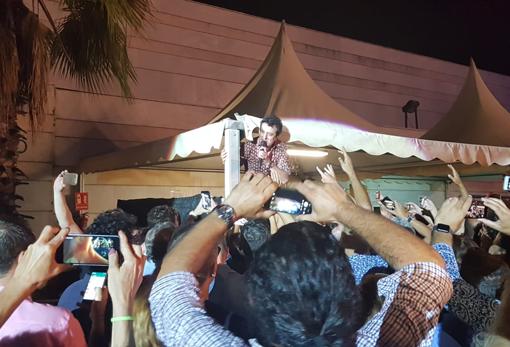 Poco a poco fueron cayendo éxitos del tamaño de «Malva», «Un giro teatral», «Nunca el tiempo es perdido», «Somos levedad» y un largo etcétera. El público estaba exultante. Y Manolo García también. Ambos se hicieron uno cuando el cantante bajó del escenario y recorrió prácticamente todo el Auditorio Rocío Jurado para mimetizarse con unos fans que, enloquecidos, le tocaron, abrazaron y cogieron a hombros igual que se le hace a los toreros al cruzar la Puerta del Príncipe en una tarde antológica en la Maestranza.