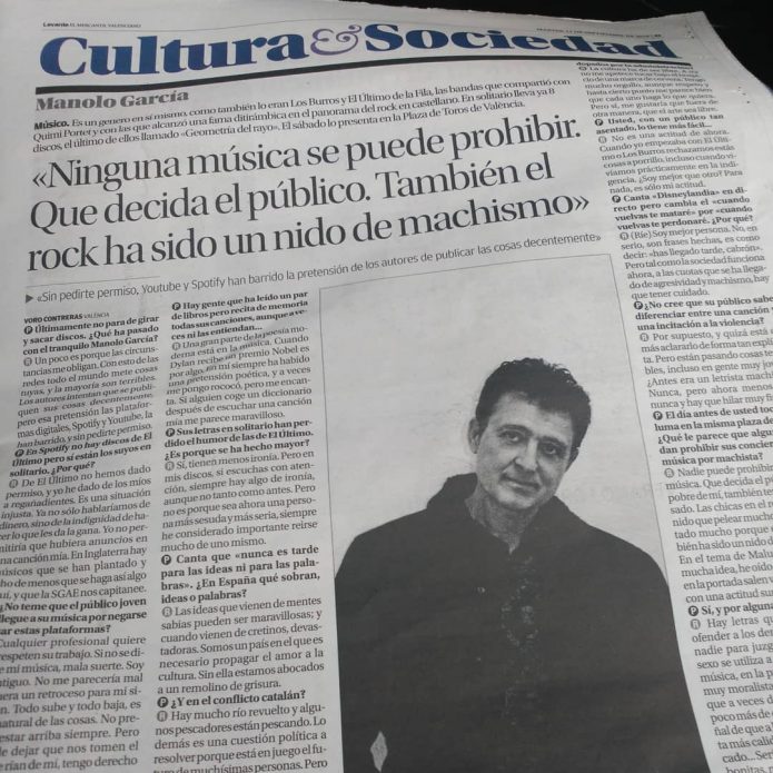 Manolo García es un genero en sí mismo, como también lo eran Los Burros y El Último de la Fila, las bandas que compartió con Quimi Portet y con las que alcanzó una fama ditirámbica en el panorama del rock en castellano. En solitario lleva ya 8 discos, el último de ellos titulado Geometría del rayo. El día 22 lo presenta en el Auditorio Municipal
