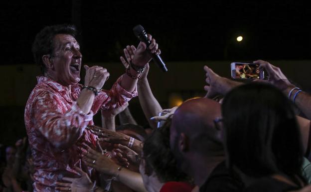 Hizo una reverencia hacia la Mari de Chambao, artista de la tierra que pisaba de nuevo García: «Un saludo muy especial a la Mari de Chambao que la quiero mucho y le deseo lo mejor en todo lo que haga». Sonaron a continuación los primeros acordes de ‘Un giro teatral’ , y justo en ese momento Manolo García se bajó del escenario y ofreció el micro a las personas que se encontraban al lado de las escaleras del escenario para que cantaran con él.