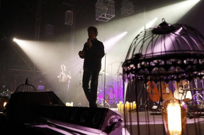El cantante ofrece en León un recital acústico, su nueva manera de expresión, en el Palacio de Deportes con lleno total.