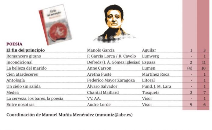 El Fin del Principio, número 1 en ventas de Poesía 21 julio, 2020Manolo GarcíaEl Fin Del Principio, de Manolo García, libro más vendido de poesía según ABC Cultural Tweet
