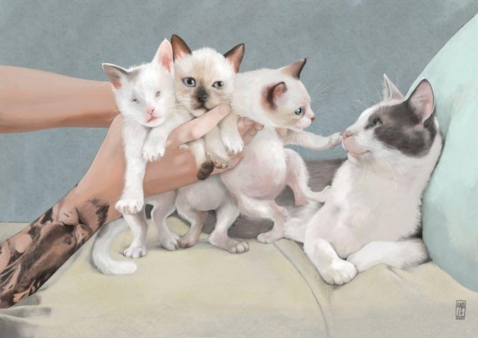 Además de las 20 imágenes de la Historia del Arte, la muestra contará también con otras 23 ilustraciones de gatos rescatados por la protectora, así como cinco imágenes de los dibujos donados por el músico Manolo García a la entidad castellonense para el calendario 2020, un dibujo de una familia gatuna de la artista gallega Ana L. Gullún y pinturas felinas de la artista Sandra Alsína y del compositor Paco Roca de Castellón.
