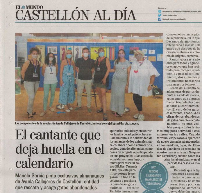 Manolo García pinta exclusivos almanaques de Ayuda Callejeros de Castellón, entidad que rescata y acoge gatos abandonados. Puedes adquirir el Calendario AACC 2021 a través este Whatsapp: 666878999