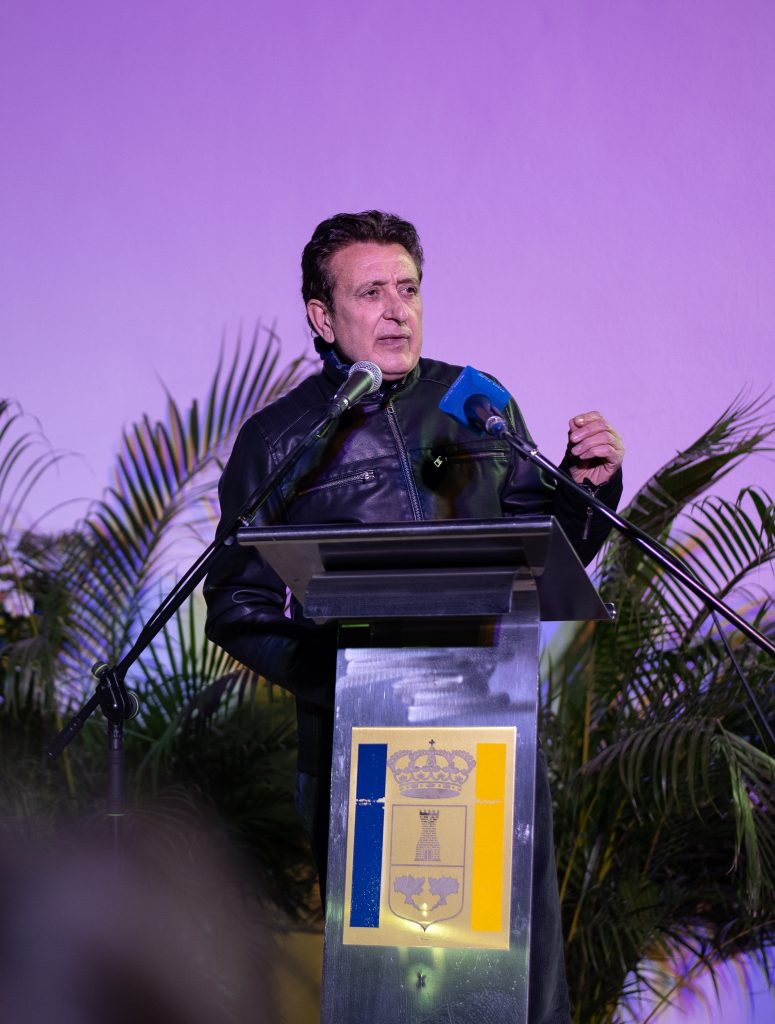 El río de su voz se enturbia y la crítica social, necesaria y bien traía, se impone. “ Si la base aguanta, la pirámide aguanta. Justicia social, repartir para vivir con dignidad” . La mirada se le estrecha, se afila con dolor ,“ Llegará un momento en el que sólo tendréis dinero y el dinero no se puede comer”. La frase sube alta sobre la grada y se dispersa buscando los responsables de este desastre. El discurso crece se complementa y se bifurca, la rica naturaleza del ponente conecta distintas disciplinas que van añadiendo contenido y veracidad. “ Yo pongo velas a un pequeño altar de los dioses de la creación … si un día, el altar empieza a ponerle velas a los dioses del dinero, las musas no me van a mandar más canciones”.