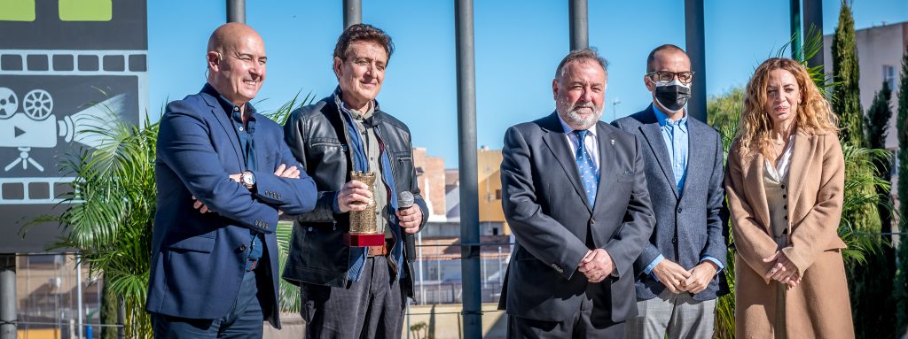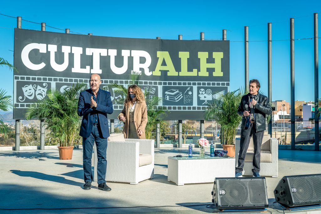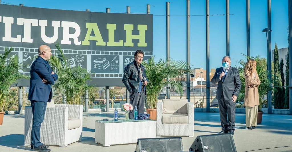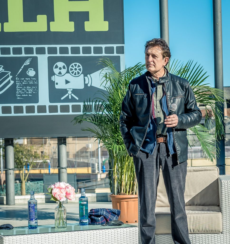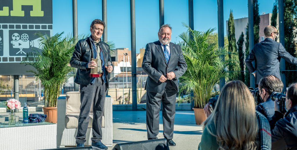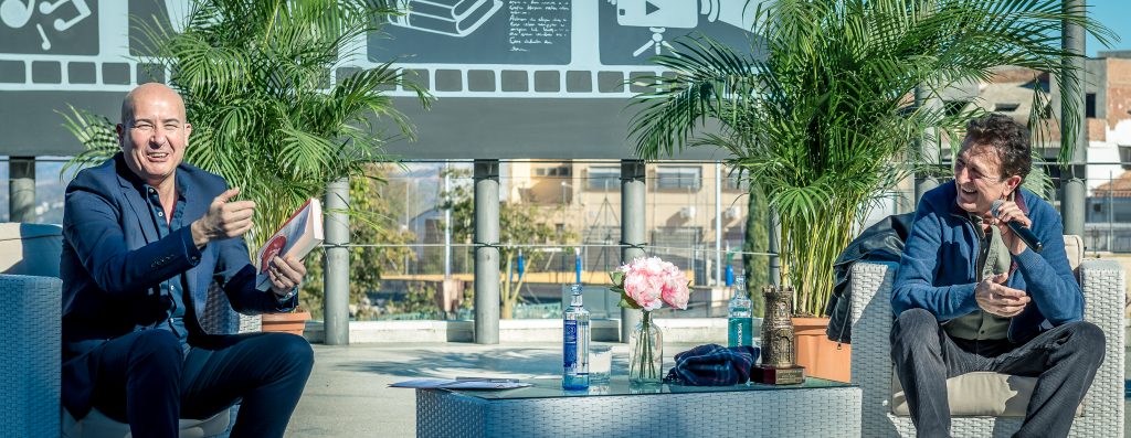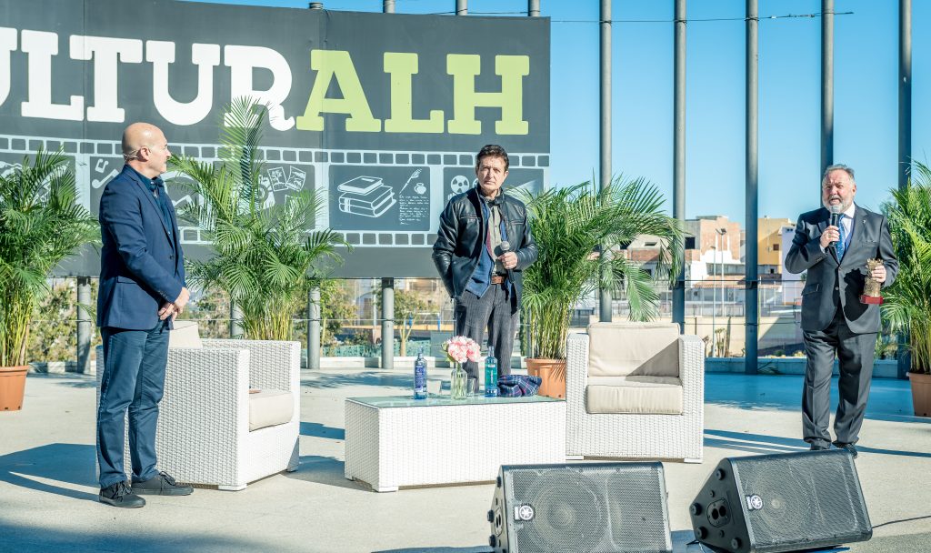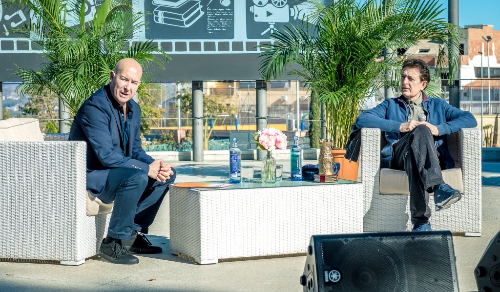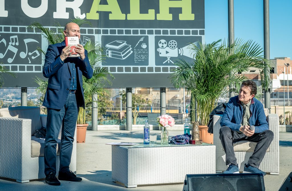 Un sendero entre árboles y cantos de pájaros nos lleva al auditorio que mira al espacio abierto del cielo. La grada está repleta de expectación y en el escenario semicircular, dos sillones y una mesa baja de color blanco, anticipan la experiencia. Tras el acto de entrega de una escultura con forma de torre en reconocimiento a su labor, comienza una amena conversación guiada por Moisés Rodríguez. Se nota la complicidad entre ambos y Manolo se acomoda sin prisa para compartir una hora y media con el auditorio.
