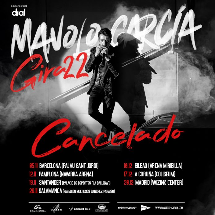 Desde Galea Producciones, oficina personal de Manolo García, Concert Tour, The Project y Get In Producciones, informamos que los conciertos que MANOLO GARCÍA tenía previsto celebrar en los meses de noviembre y diciembre, han sido cancelados.