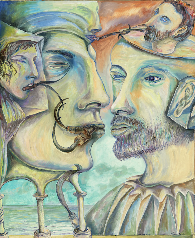 Manolo García es historia viva del pop español pero también un pintor con una trayectoria de cuatro décadas. Frente al caballete ha construido un universo evocador de imágenes misteriosas que son como esas “chispas de poesía que saltan al vacío” de las que hablaba Franz Roh. Además, los pinceles le brindan un refugio existencial, le permiten detener el tiempo y abstraerse de la vorágine diaria y las giras interminables. “Gil de Biedma dijo en cierta ocasión que, en realidad, su pretensión no había sido ser poeta sino poema. Yo, humildemente, me conformaría con saber que soy lo primero, porque significaría que algunos instantes de los días respiro libre”, ha dicho el autor de Pájaros de barro que pinta “para ser feliz”. Música y pintura, por tanto, discurren análogas en su itinerario vital y comparten inevitables puntos de conexión.