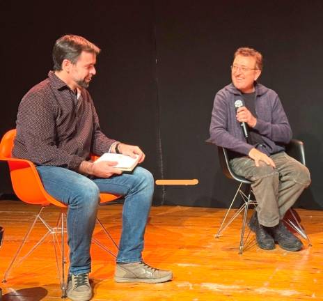 La idea era hablar de secretillos de los relatos, pero totalmente al contrario de la famosa frase de Francisco Umbral «he venido a hablar de mi libro…» a Manolo García le gusta hablar de la vida, de las injusticias, de lo mal que lo hacen los políticos, del cambio climático, de la gente joven, de lo mucho que trabajamos y de muchas más cuestiones que preocupan a la sociedad.