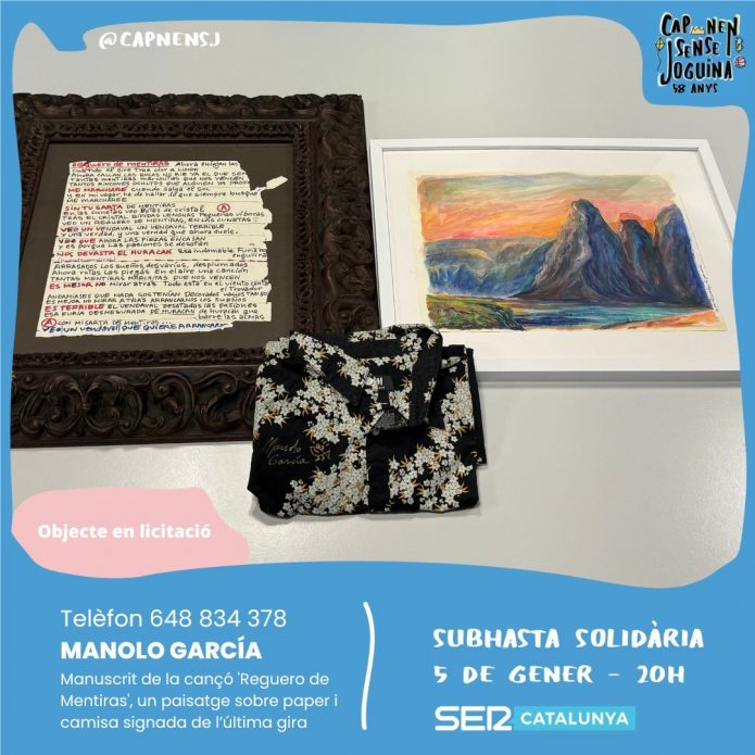 El cantante cede un manuscrito de ‘Reguero de Mentiras’, una pintura de un paisaje sobre papel y una camisa firmada de la última gira.