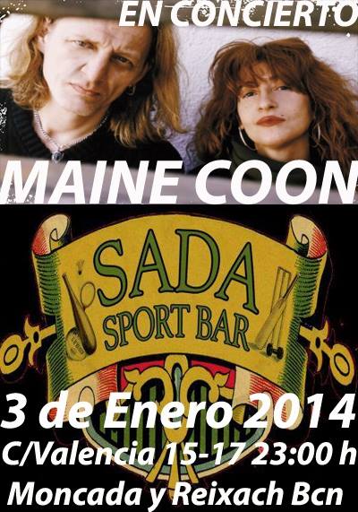 Maine Coon: «Toda la vida» 3 enero, 2014Carmen GarcíaEsta noche en Sada Sports Bar, Montacada i Reixach. Evento en Facebook: ENLACE Tweet
